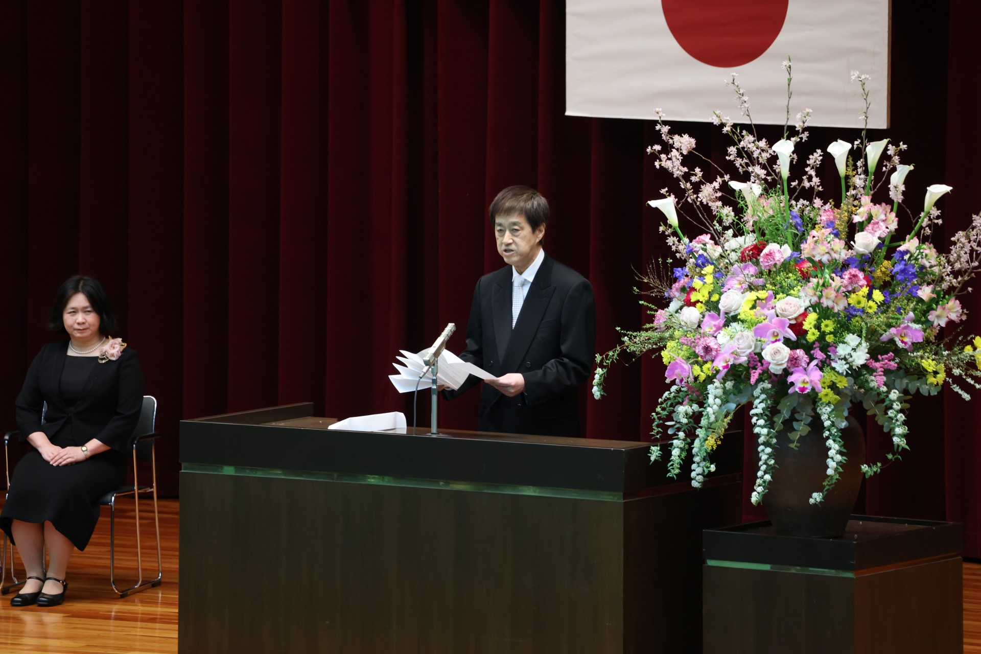 また、置かれた環境や立場で取り組む課題、壁に対して傍観者では無くプレーヤーとして関わって欲しい、と述べられました。「観客席で壁を叩く人を眺めるよりは、自分自身がグラウンドやステージに立って藻掻いた方がずっと面白いし、楽しい。若い皆さんは傷ついても容易に回復できます。失敗を恐れず、自分の可能性を追求して下さい。百回の見物より一回の実践を」と、新入生の新たな門出にエールを送りました。
